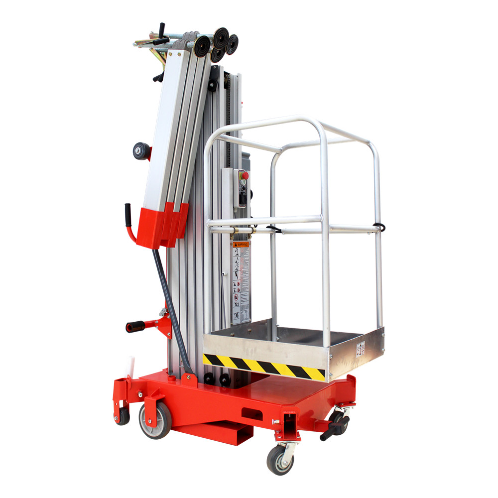 - マスト間のガイド装置(スライダーとガイドホイール): Self-lubricating polymer sliders and imported nylon wheels are adopted between the masts, which are free of lubrication and can avoid the instability of equipmentthe resulted by internal material wear of aluminum alloy after long-term using.”